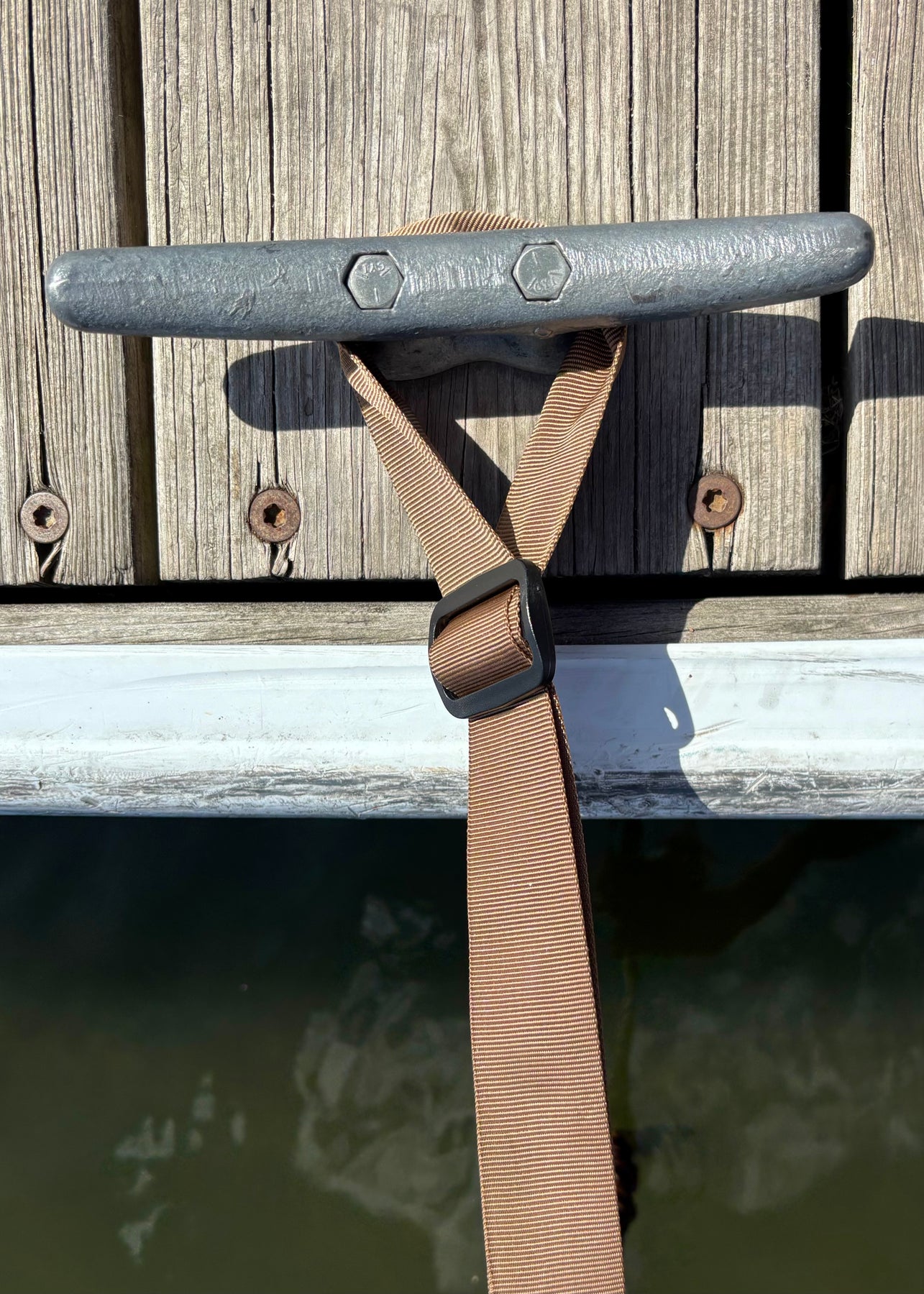 Adjustable Loop with Slider Buckle: Cinches tightly to dock poles or cleats.